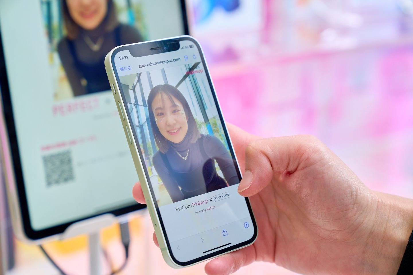 Skin Accessory™ is a product that allows people to enjoy makeup as a form of fashion—an “accessory for the skin.” However, because it is still a new and unfamiliar type of makeup for many customers, we faced the challenge of a high barrier before they felt comfortable actually applying it to their skin. In the past, we prepared interactive elements such as acrylic plates with Skin Accessory™ applied, which customers could hold up to their faces to try it out.