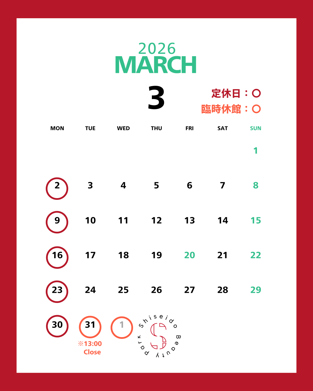 We would like to inform you of our business calendar for March-April.