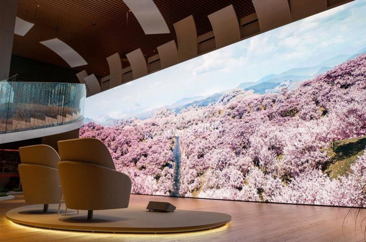 16K大画面のBeauty Retreat Theaterでは桜の映像が空間を彩り、fibonaもピンクをまとった限定展示に。